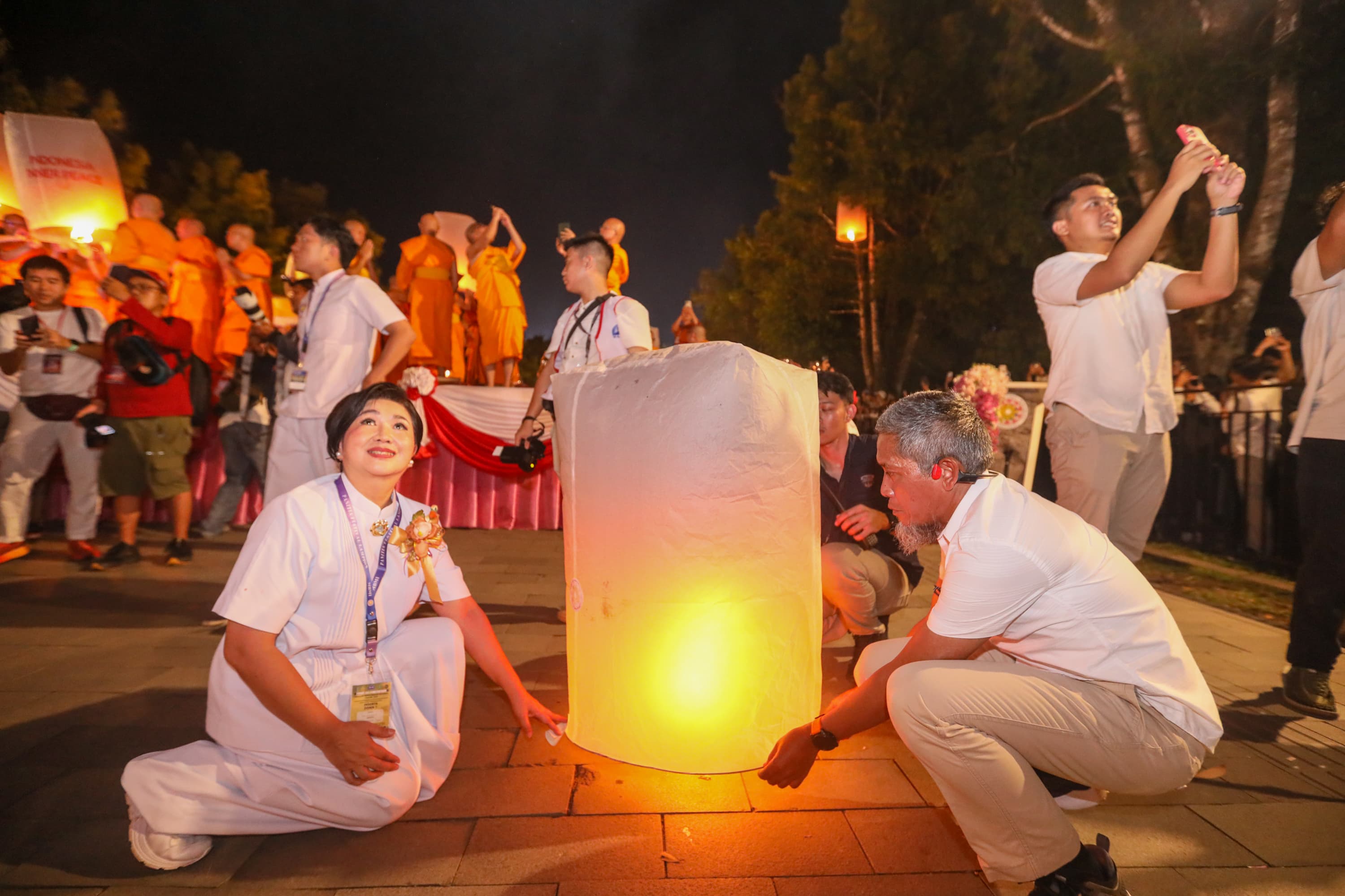 Ketua Majelis Buddha Mahanikaya Indonesia, Agus Jaya, mengungkapkan antusiasme peserta sangat tinggi. “Cuaca cerah mendukung kelancaran acara, berbeda dari tahun lalu yang hujan. Sekitar 4.000 orang hadir, acara berjalan sukses,” ujarnya usai penerbangan lampion. Perayaan Waisak tahun ini mengusung tema “Tingkatkan Pengendalian Diri dan Kebijaksanaan Mewujudkan Perdamaian Dunia”.