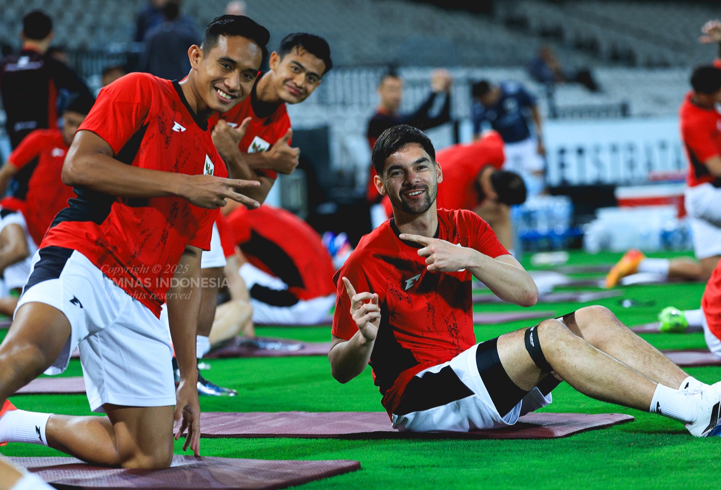 latihan perdana skuad Garuda di Stadion Netstrata Jubilee, Sydney pada Selasa, (18/3/2025). Foto:PSSI