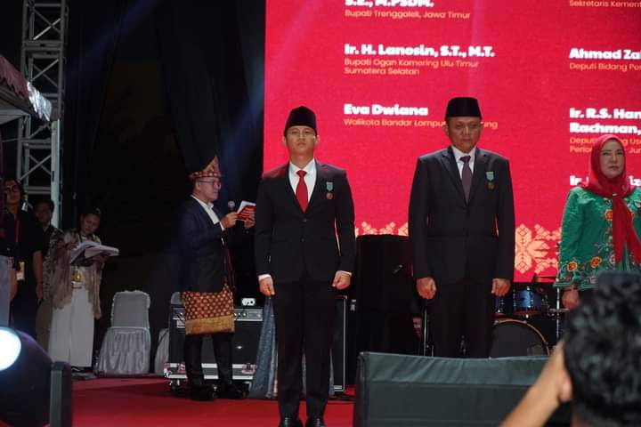 PanselaNews.com,Palembang- Bupati Trenggalek Mochamad Nur Arifin meraih tanda kehormatan Satyalencana Wirakarya di bidang Koperasi dan UMKM.