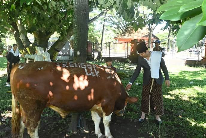 Dalam kesempatan itu, Mas Ipin didampingi istrinya Novita Hardini dan ketiga anaknya saat menyerahkan hewan kurbannya menyampaikan, “Hari ini spesial 1, Pak Presiden memberikan hewan kurban berupa Sapi seberat 1 ton 90. Dan hebatnya itu sapi yang dikelola oleh peternak dari Trenggalek asal Desa Gembleb,” ungkap bupati, di halaman Pendopo Manggala Praja Nugra Trenggalek, Jumat, 6 Juni 2025.