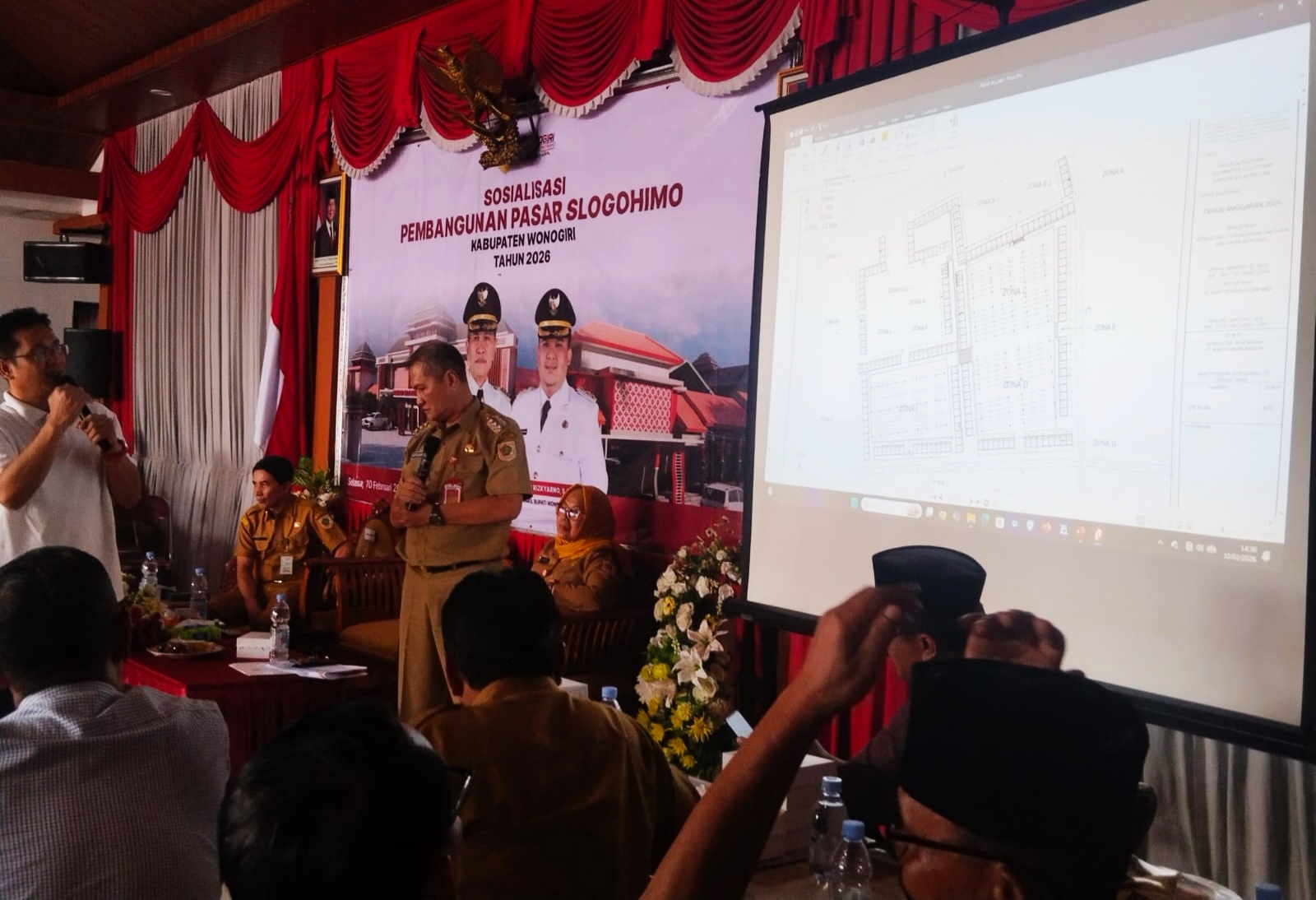 Pertemuan tersebut dihadiri langsung oleh Bupati Wonogiri Setyo Sukarno, anggota DPRD Kabupaten Wonogiri Dapil III, jajaran OPD terkait, Forkopimcam Slogohimo, serta sekitar 400 pedagang Pasar Slogohimo. Audiensi berlangsung sejak pukul 13.00 WIB hingga 15.30 WIB dan berjalan tertib serta kondusif.