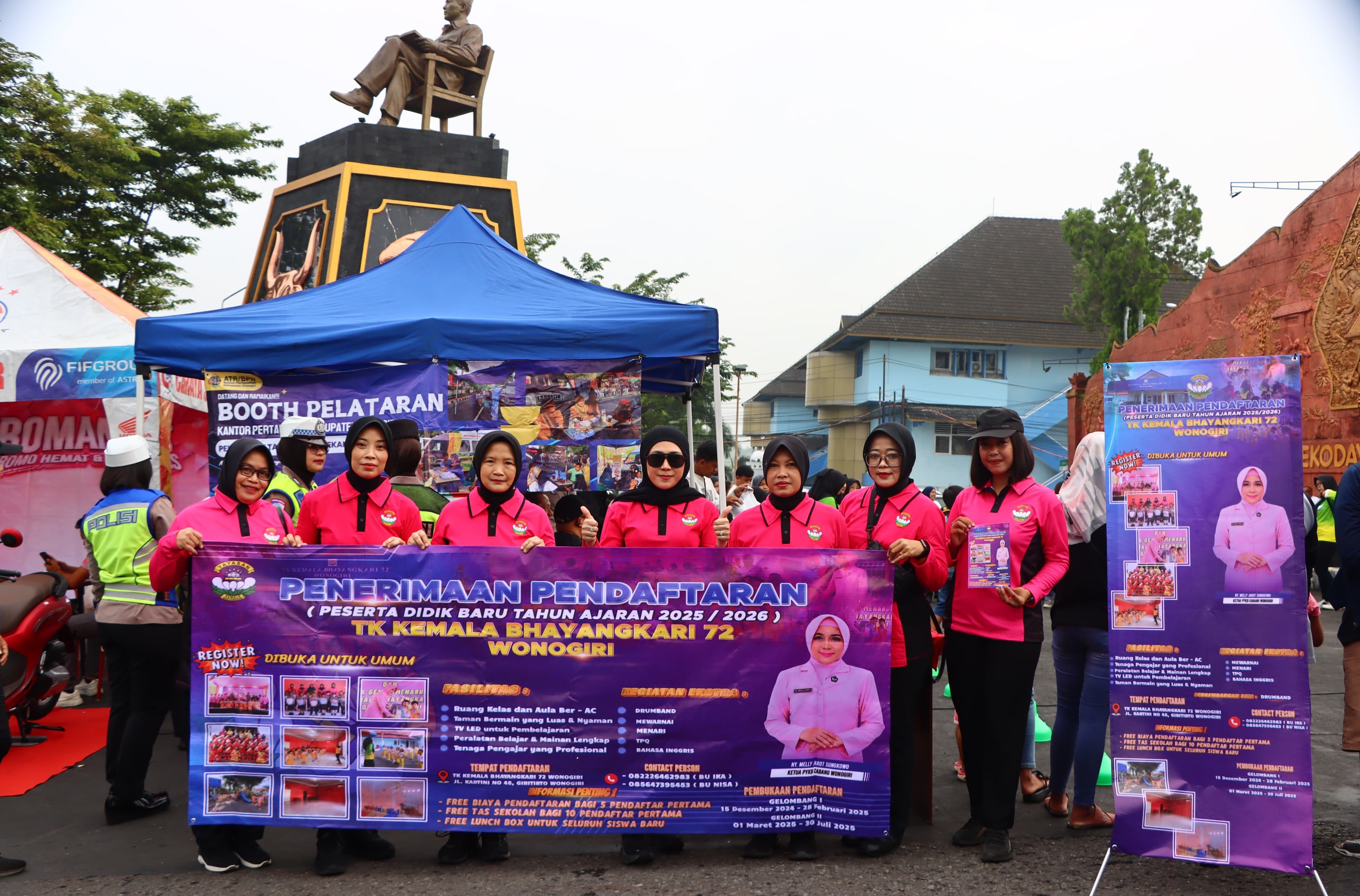 Sosialisasi penerimaan siswa baru TK Kemala Bhayangkari 72 Wonogiri di bundara patung Soekarno di Alun-alun Wonogiri, Minggu (23/2/2025).
