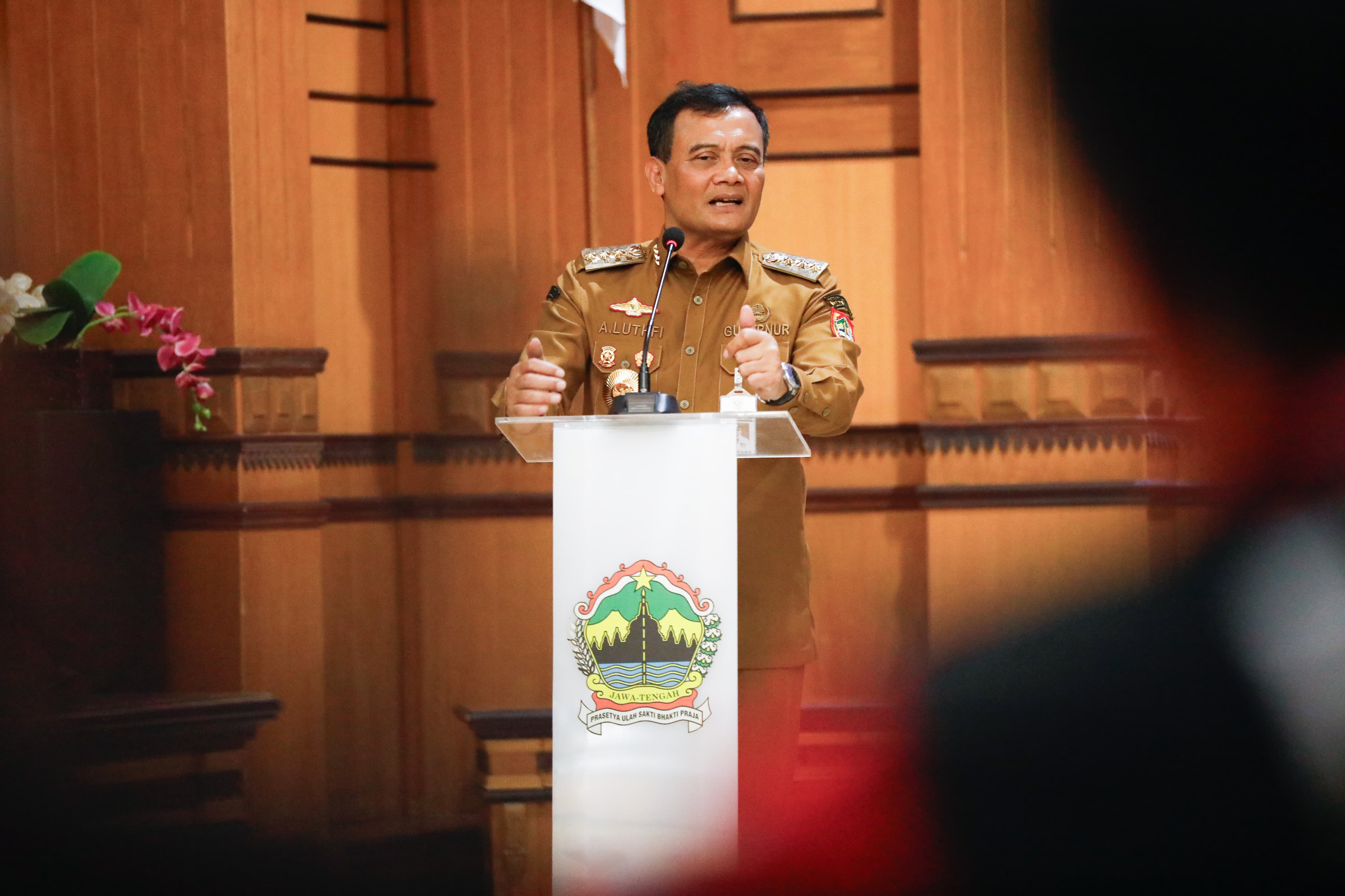 Gubernur Jawa Tengah Ahmad Luthfi saat menghadiri Dialog Ketenagakerjaan di Kantor Dinas Tenaga Kerja dan Transmigrasi Jawa Tengah, Selasa ( 29/4/2025)