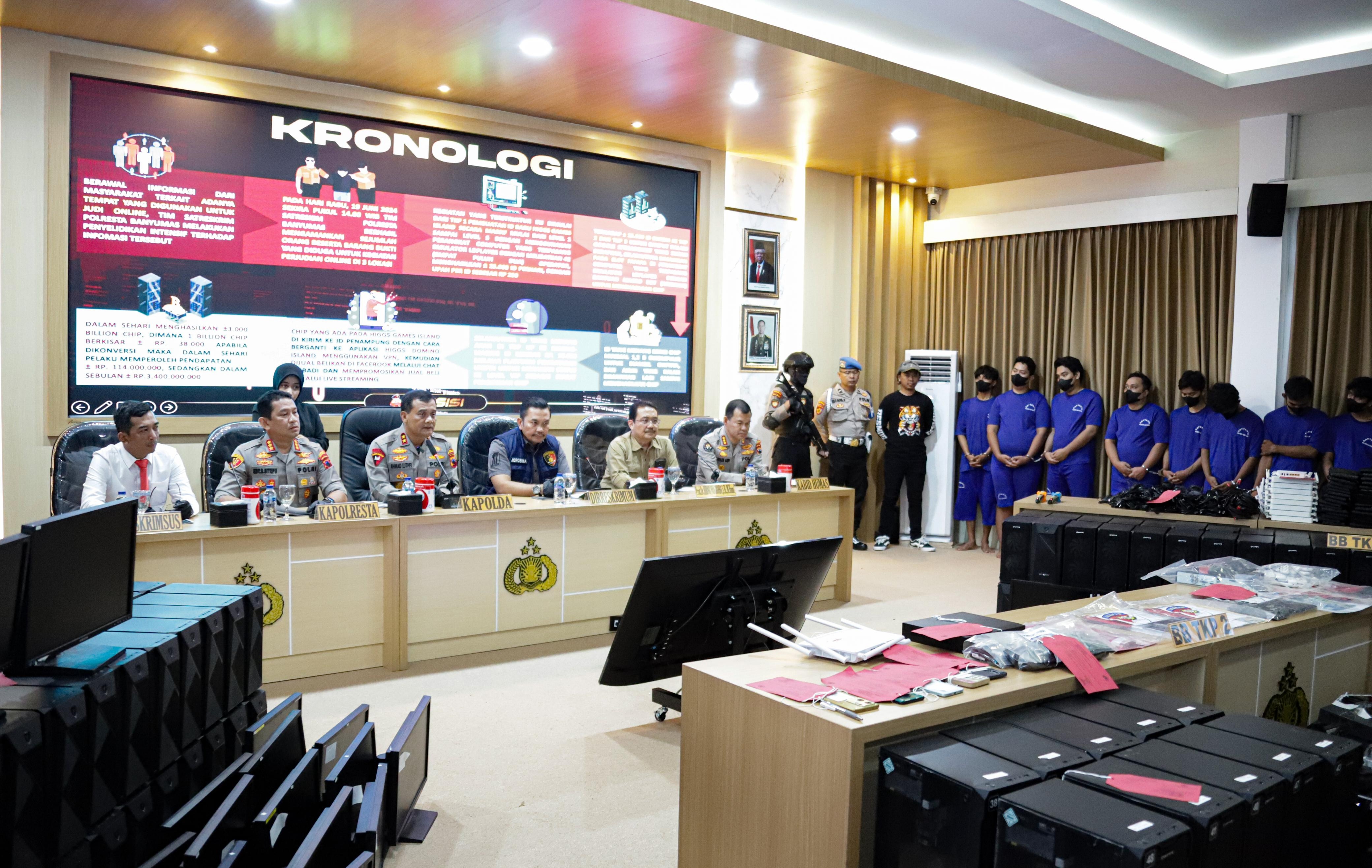 Lebih lanjut di sampaikan bahwa modus operandi yang digunakan adalah dengan menggunakan ratusan perangkat komputer dan PC dengan kedok bermain game, untuk membuat ID secara masif dan memainkan ID tersebut untuk menghasilkan Chips untuk dijual dan dipromosikan melalui aplikasi media sosial Facebook.