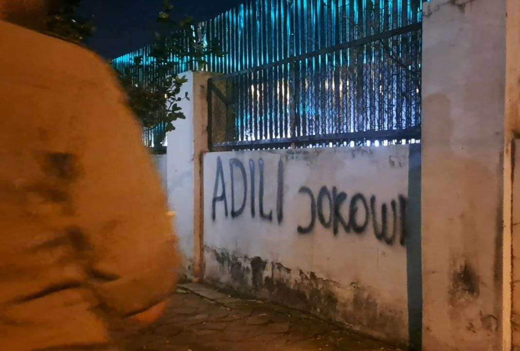 PanselaNews.com, Surakarta – Munculnya tulisan grafiti bertuliskan “Adili Jokowi” di berbagai titik Kota Solo menjadi sorotan publik. Tulisan berwarna hitam yang diduga dibuat menggunakan cat semprot tersebut ditemukan di enam lokasi, termasuk Jalan Prof. Soeharso, Jalan Ki Hajar Dewantoro, dan Jalan Menteri Supeno.