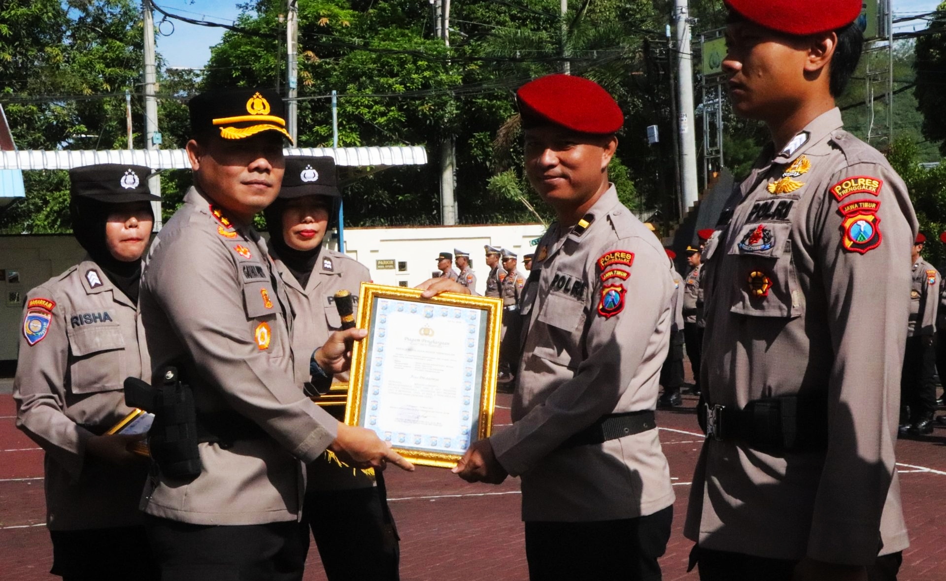 Panselanews.com,Trenggalek-Kepala Kepolisian Resort Trenggalek AKBP Gathut Bowo Supriyono, memberikan reward kepada sejumlah anggota berprestasi. Penyerahan penghargaan tersebut dilakukan bersamaan dengan digelarnya Upacara Kesadaran Nasional, di halaman Mapolres Trenggalek,Senin (18/3/2024).