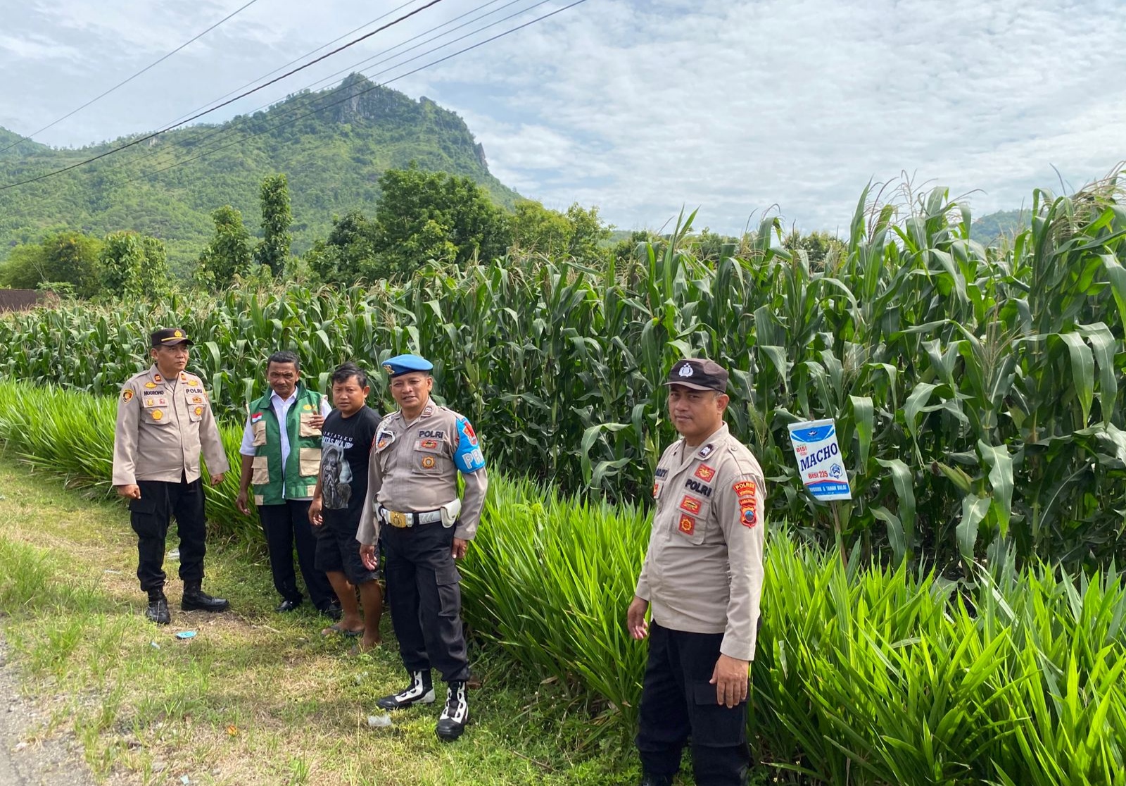 Kapolsek Ngadirojo AKP Pujoyono, SH bersama dua anggotanya, Senin (5/1/2026) melakukan pengecekan lahan jagung di Dusun Ngadirejo Wetan, Desa Pondok, Kecamatan Ngadirojo. Lahan seluas kurang lebih 3 hektare tersebut saat ini memasuki usia tanam sekitar 75 hari.