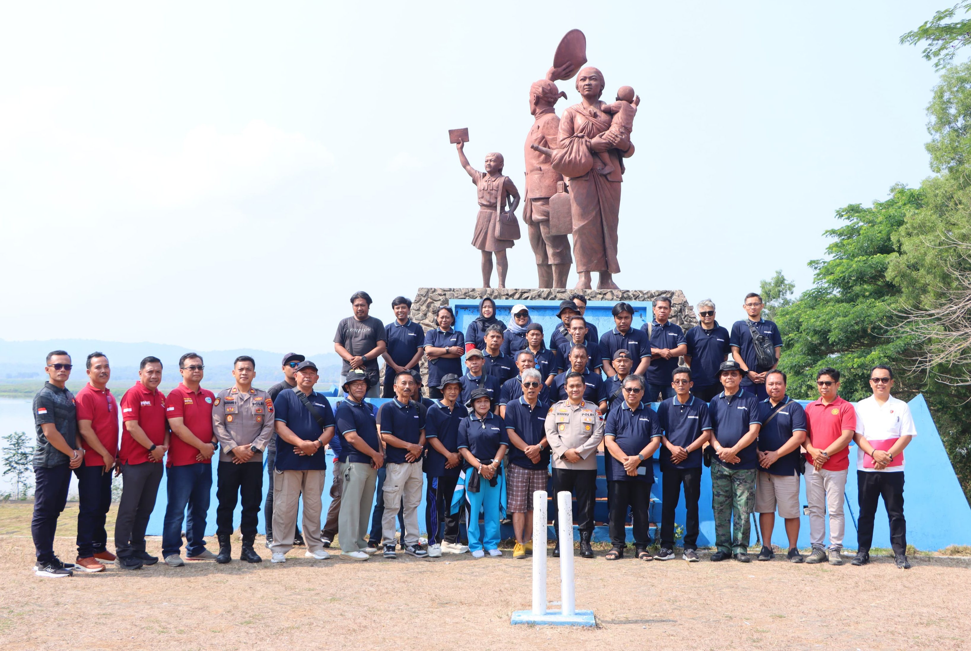 Kapolres Wonogiri AKBP Wahyu Sulistyo, didampingi para petinggi Polres pada Kamis [25/9] jalan sehat bareng wartawan. Kegiatan ini berlangsung di kawasan Monumen Bedhol Desa, Waduk Gajah Mungkur [WGM].
