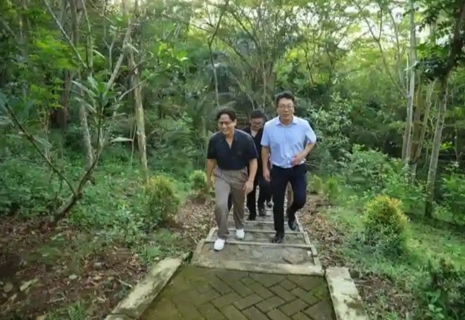 Dari paparan di Gedung Smart Center Trenggalek, kepala daerah muda itu mengantarkan tamunya berjalan kaki dari Alun-alun menuju ke Hutan Kota Trenggalek. Tujuannya mengenalkan daerahnya dan kondisi di udara di Trenggalek sebelum istirahat.