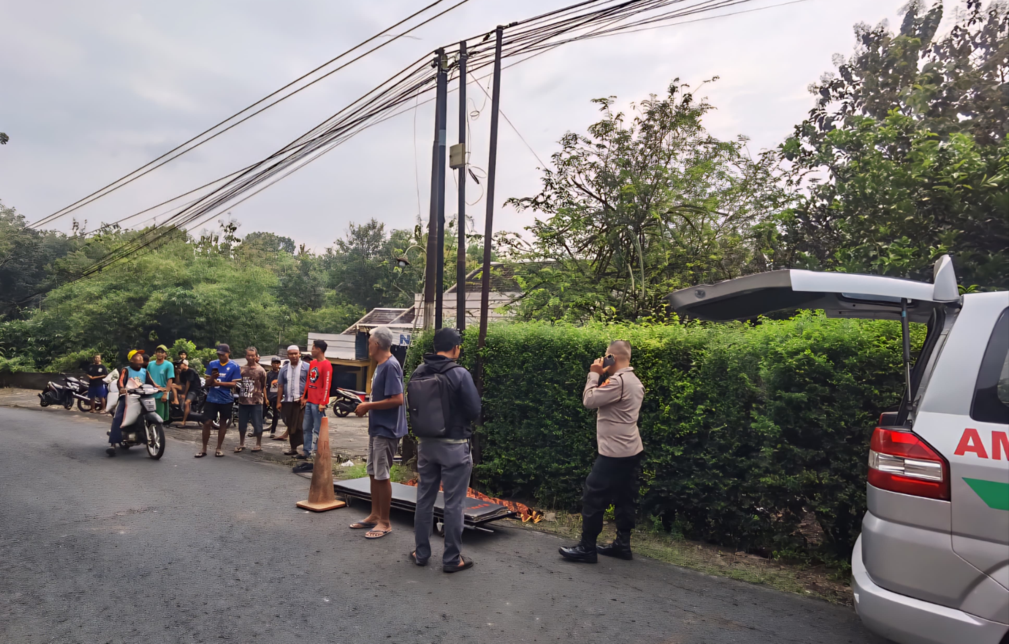 Polisi saat mendatangi TKP pemuda Tewas tersengat listrik di Desa Kebonagung, Kecamatan Sidoharjo, Wonogiri, Sabtu (4/4/2026) Foto: Dok Polres Wonogiri