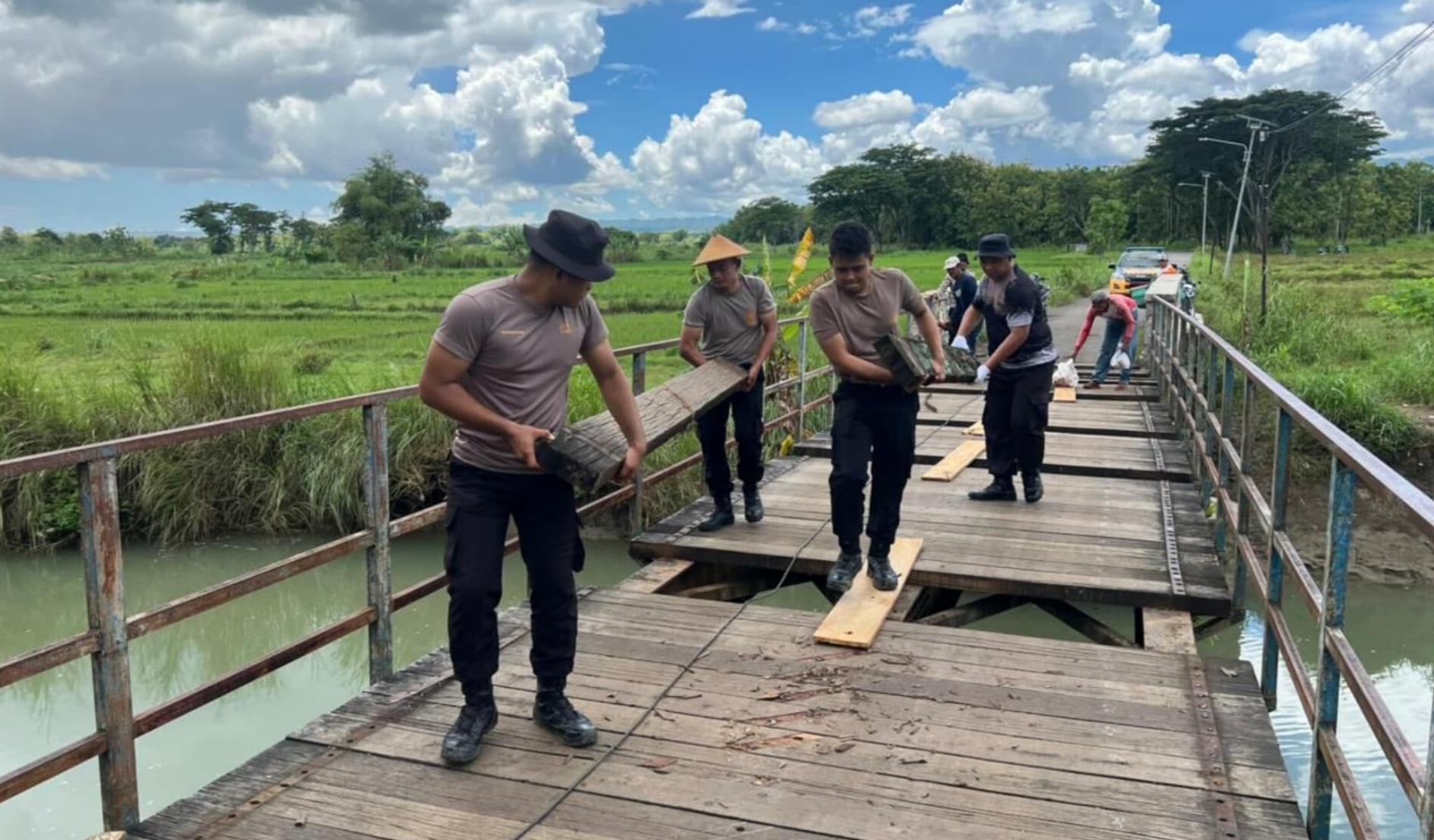 “Jembatan Kali Sambi merupakan penghubung vital antarwilayah, yakni Desa Tawangrejo Kecamatan Giriwoyo dengan Desa Baleharjo Kecamatan Eromoko. Jembatan ini setiap hari dilalui warga, termasuk lebih dari 60 anak sekolah serta sekitar 250 masyarakat yang beraktivitas di sektor pertanian, perdagangan, dan kegiatan lainnya,” ungkap AKBP Wahyu Sulistyo.