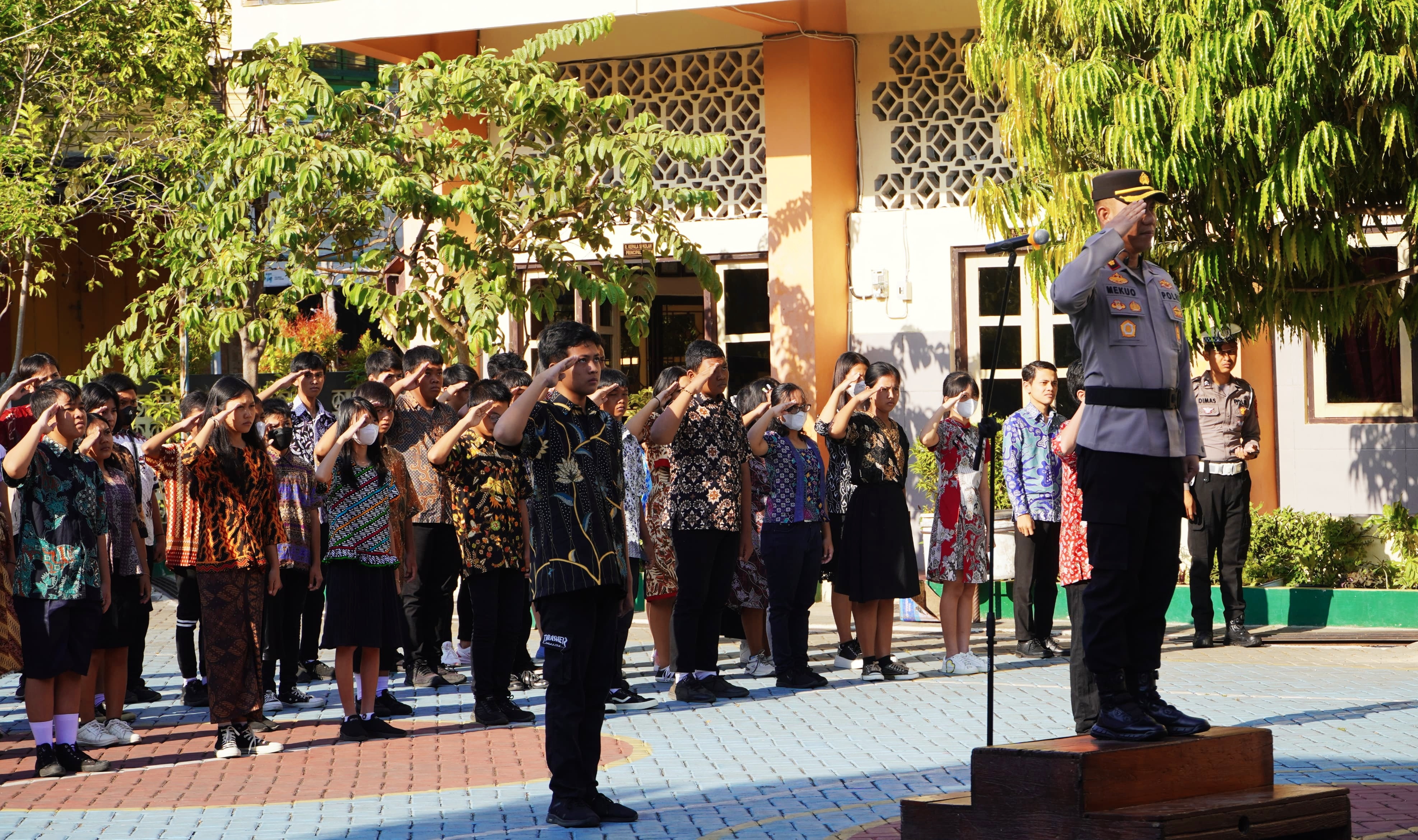 Panselanews.com,Wonogiri- Bentuk kehadiran Polri serta kepedulian dengan siswa-siswi di sekolah sebagai generasi penerus bangsa, Polres Wonogiri, melaksanakan kegiatan Police Goes To School, dengan menjadi pembina upacara hari Senin di SMP Kanisius Wonogiri, Senin (2/10/2023).