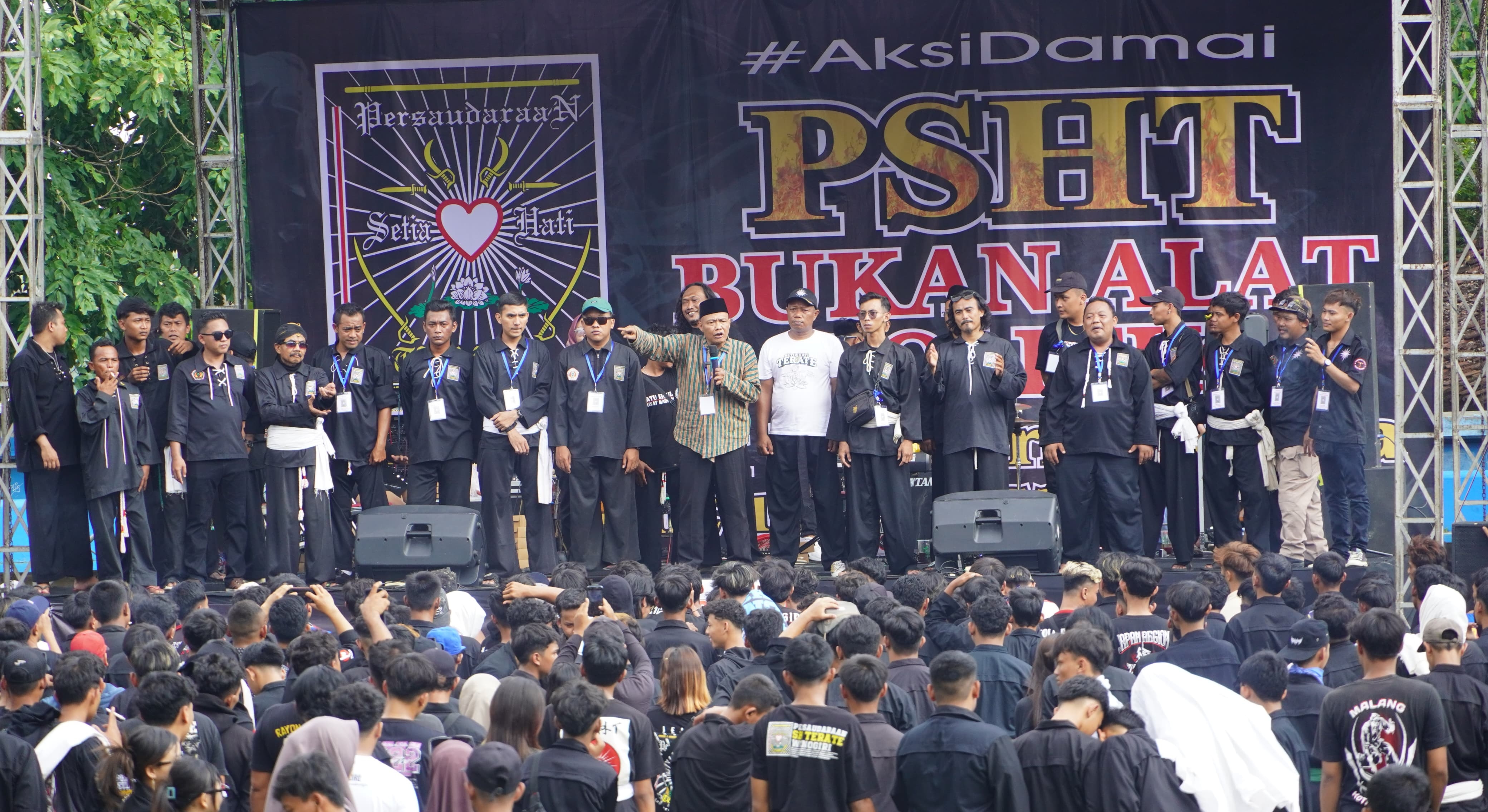 Warga PSHT Se-Wilayah Kabupaten Wonogiri gelar aksi damai PSHT bukan alat politik di Monumen Bedol Desa, Waduk Gajah Mungkur (WGM) Wonogiri, Minggu (17/11). (Foto: ist) PanselaNews.com,Wonogiri – Kapolres Wonogiri AKBP, jarot Sungkowo, memimpin langsung pengamanan aksi damai PSHT bukan alat politik, yang di gelar oleh Warga Persaudaraan Setia Hati Terate (PSHT) Se-wilayah Wonogiri di Monumen Bedol Desa, Waduk Gajah Mungkur (WGM), Wonogiri, Minggu (17/11)