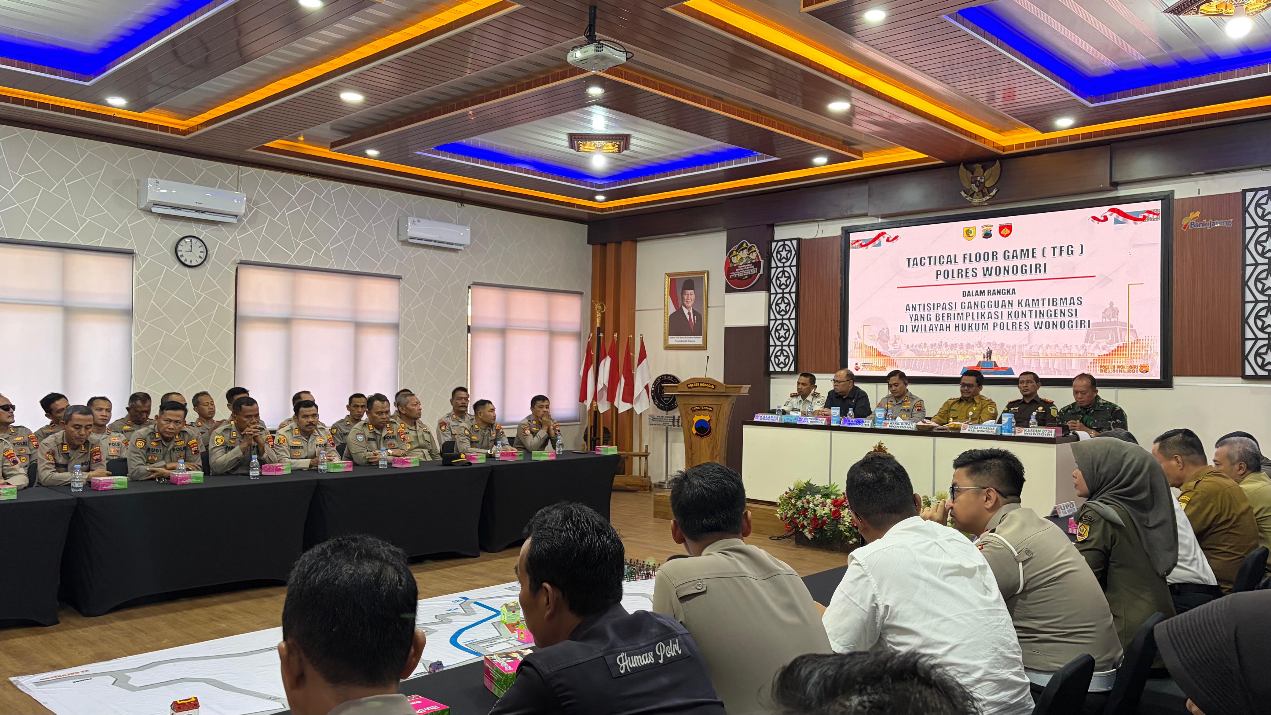 PanselaNews.com [WONOGIRI] – Polres Wonogiri menggelar kegiatan Tactical Floor Game (TFG) sebagai bentuk kesiapsiagaan dalam mengantisipasi potensi gangguan keamanan dan ketertiban masyarakat (kamtibmas) yang berimplikasi kontingensi, Selasa (21/4/2026) pagi WIB.