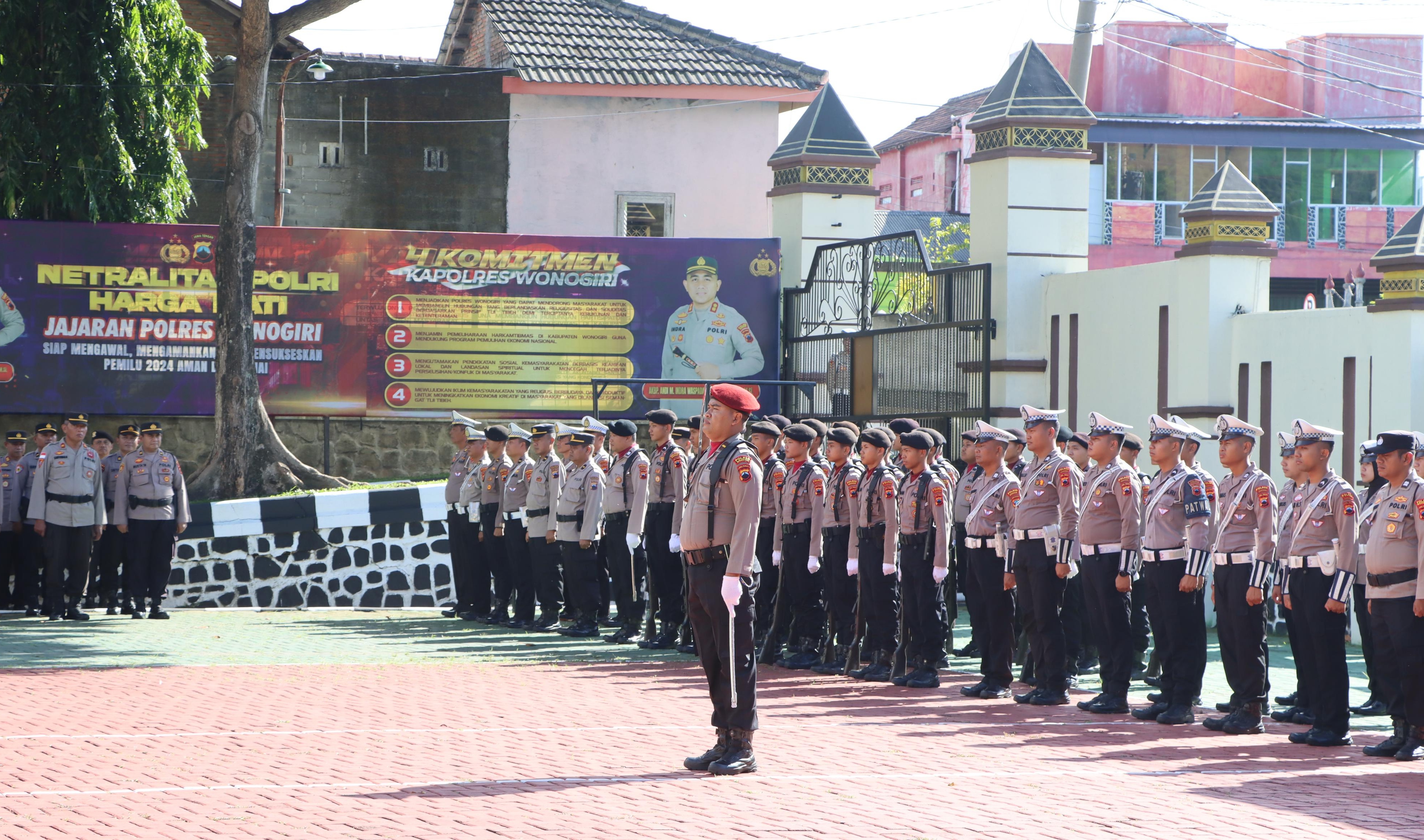 Dalam amanatnya, Kapolres Wonogiri, membacakan amanat Kapolda Jawa Tengah, menyampaikan ucapan Terima kasih kepada seluruh Polres jajaran Polda Jateng dimana sampai saat ini situasi di Jawa Tengah relatif aman dan kondusif. Namun demikian, Kapolda berpesan agar seluruh anggota tetap siap siaga dan tidak underestimate dengan situasi yang ada.