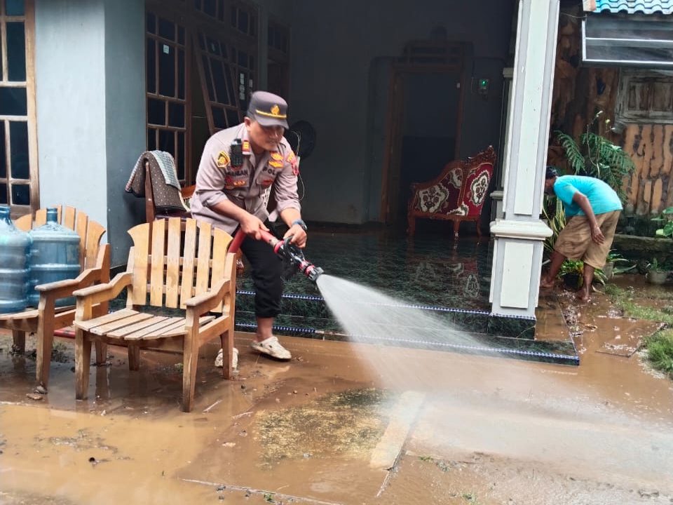 Personel kepolisian tidak hanya mengarahkan jalannya kegiatan, tetapi juga ikut bekerja di lapangan membersihkan lumpur dan sampah dari pekarangan serta jalan yang sempat tergenang air. Kehadiran polisi di tengah masyarakat ini menjadi bukti kepedulian dan komitmen pelayanan yang humanis.