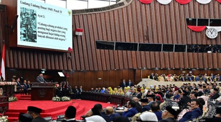 Presiden Prabowo menyampaikan Pidato Kenegaraan pada Sidang Tahunan MPR-RI dan Sidang Bersama DPR-RI dan DPD-RI di Gedung Nusantara, Jakarta, Jumat, 15 Agustus 2025. Foto: BPMI Setpres/Muchlis Jr