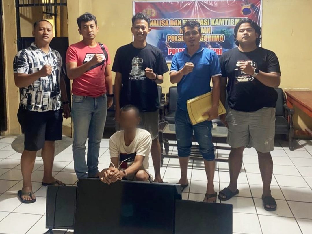 Ia diduga kuat mencuri lima unit televisi dari beberapa kamar hotel yang sebelumnya ia pesan sendiri menggunakan identitas palsu melalui aplikasi WhatsApp.