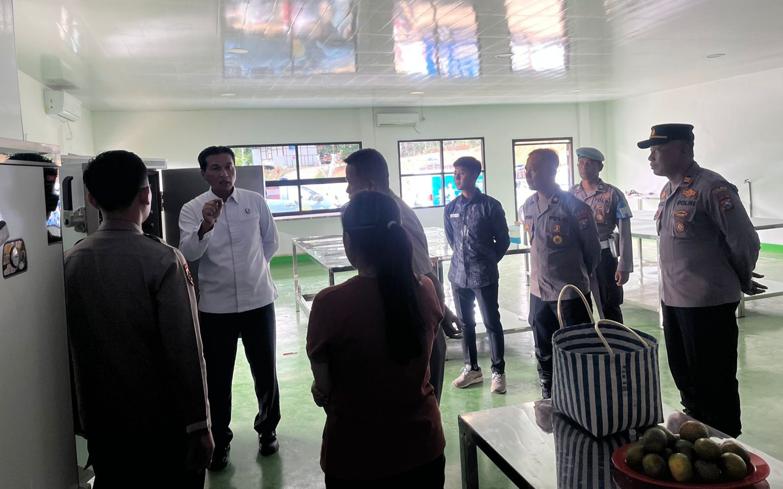 Dalam kesempatan tersebut, tim mengecek ruang sejumlah ruangan, mulai dari dapur, area penerimaan bahan baku, penyimpanan, ruang persiapan dan pengolahan makanan, serta area pemorsian dan pengemasan. Selain itu, terdapat juga ruangan pendukung seperti ruang kantor staf, ruang rapat, ruang konsultasi gizi, serta fasilitas sanitasi dan area pendukung logistik.