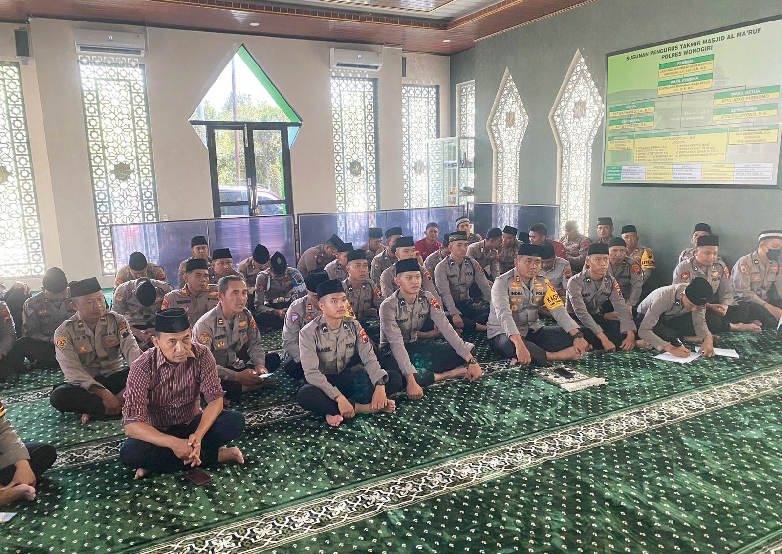 Kegiatan Binrohtal tersebut dilaksanakan di dalam masjid Al Ma’ruf Polres Wonogiri yang diikuti 80 personil dengan bertujuan untuk meningkatkan keimanan dan ketaqwaan anggota Polri, serta membentuk karakter yang baik dalam melaksanakan tugas. Pada kesempatan tersebut, tausiah disampaikan oleh Al Ustadz Dr. Drs M Thoha, M.M.,
