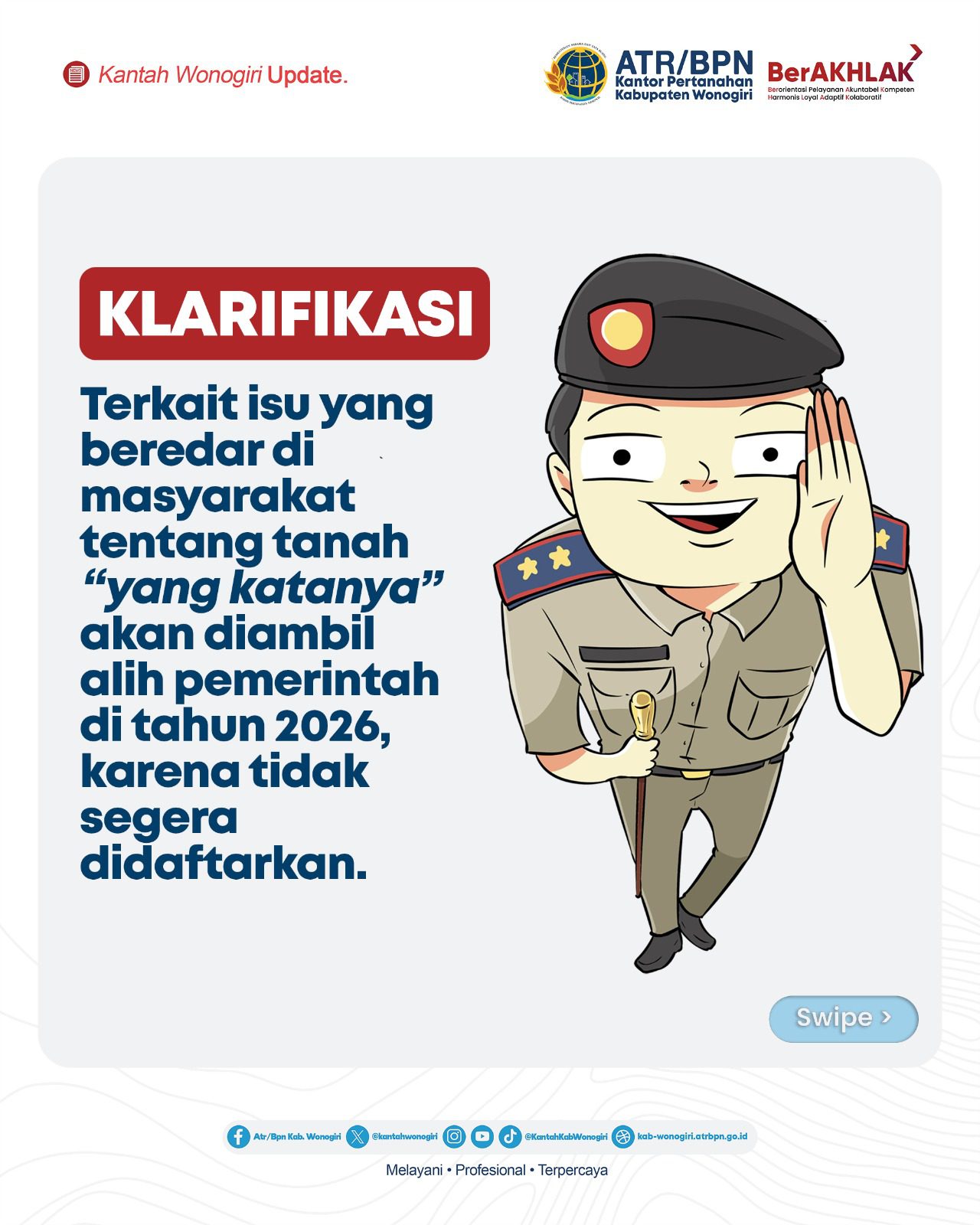 PanselaNews.com [WONOGIRI] – Beredar isu di masyarakat, dengan tidak berlakunya girik, verponding, dan letter c, tanah yang belum bersertipikat mulai tahun 2026 akan diambil negara.